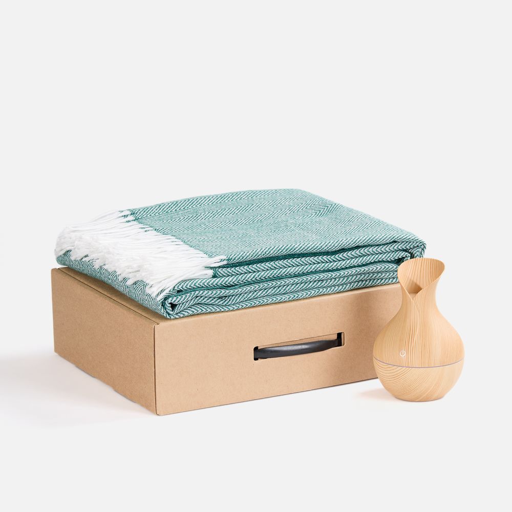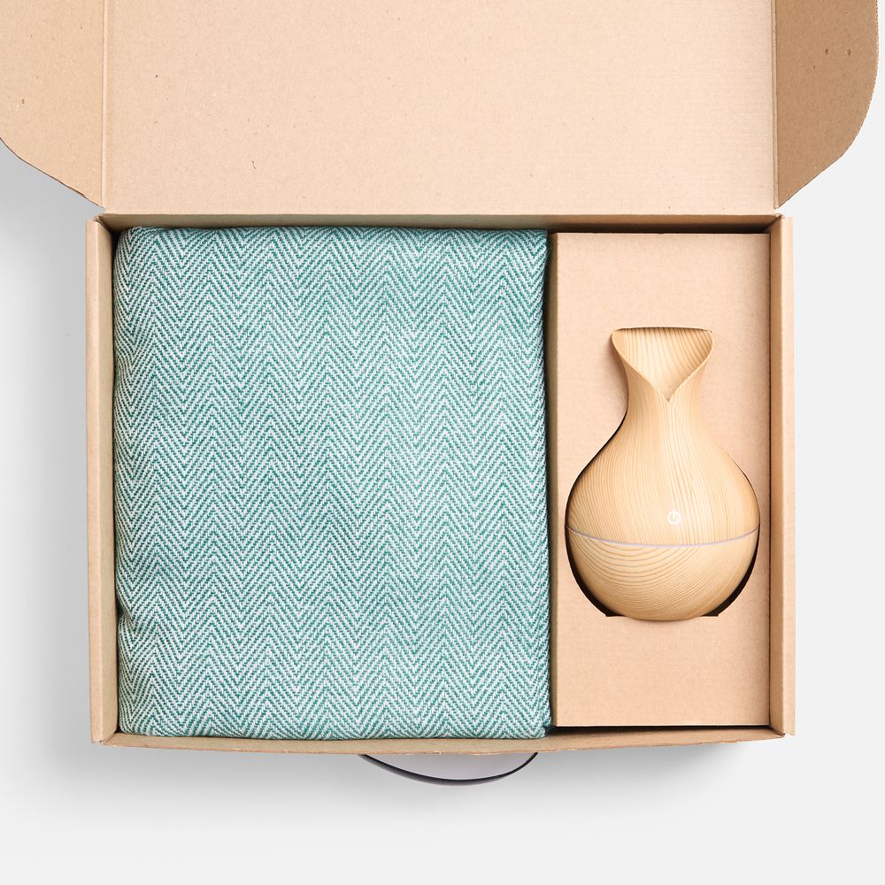 Мягкий плед нежных оттенков подарит тепло и комфорт, а изящный увлажнитель наполнит воздух свежестью и приятным ароматом. Этот набор — гармония красоты и функциональности, где каждый момент посвящен ценному отдыху и расслаблению.
