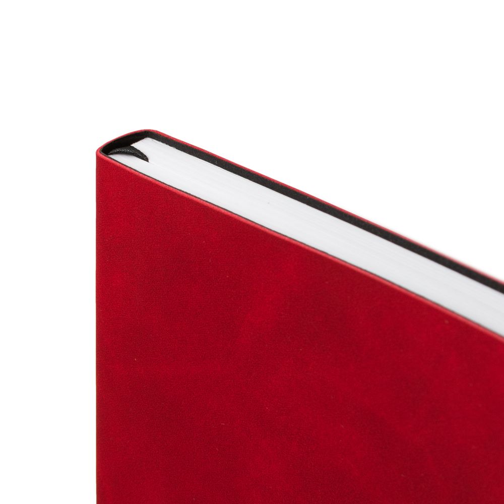 Ежедневник с гибкой обложкой, выполнен из материала Nubuck Touch, красный РР, дополнен ляссе и петлей-резинкой для ручки черного цвета.