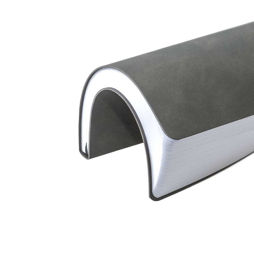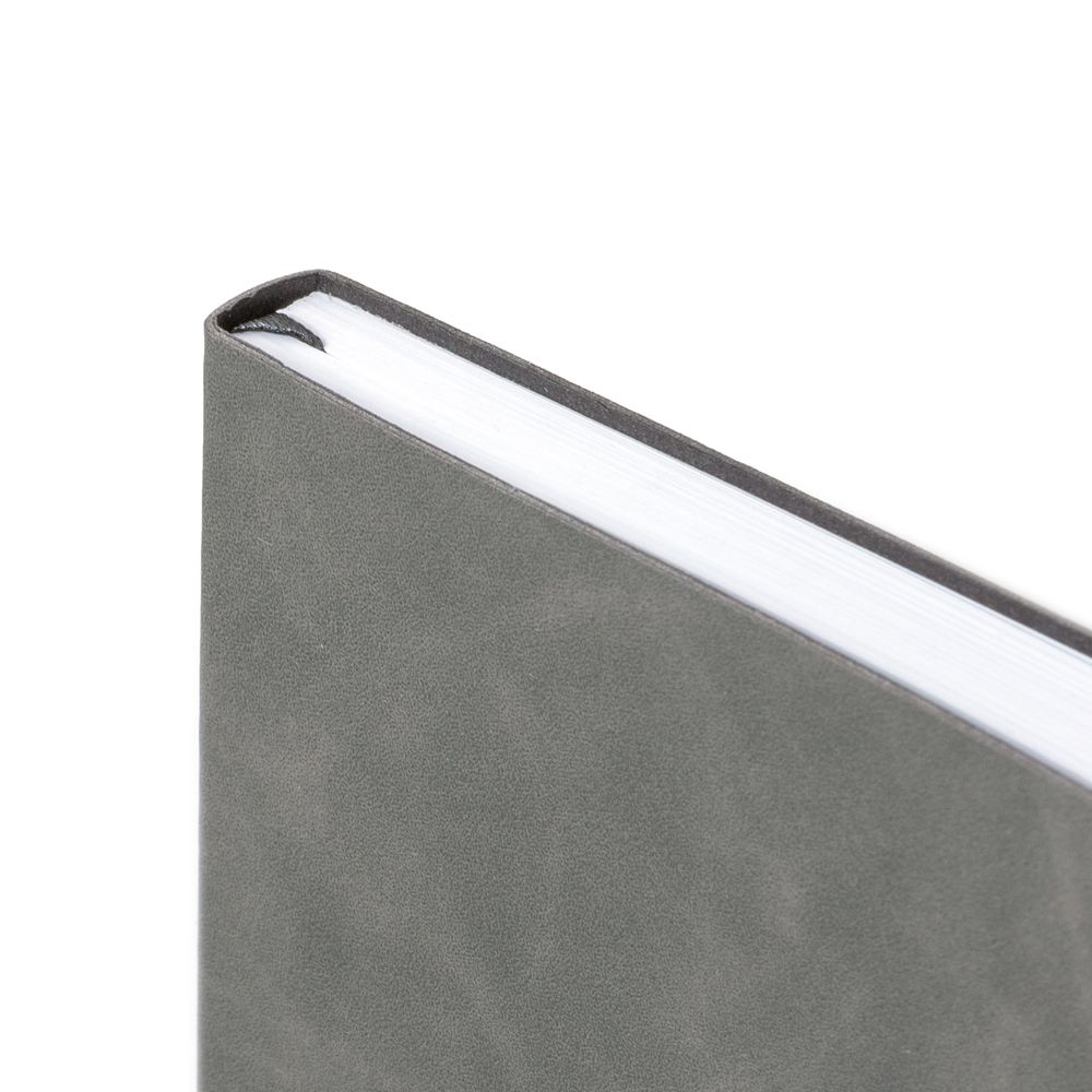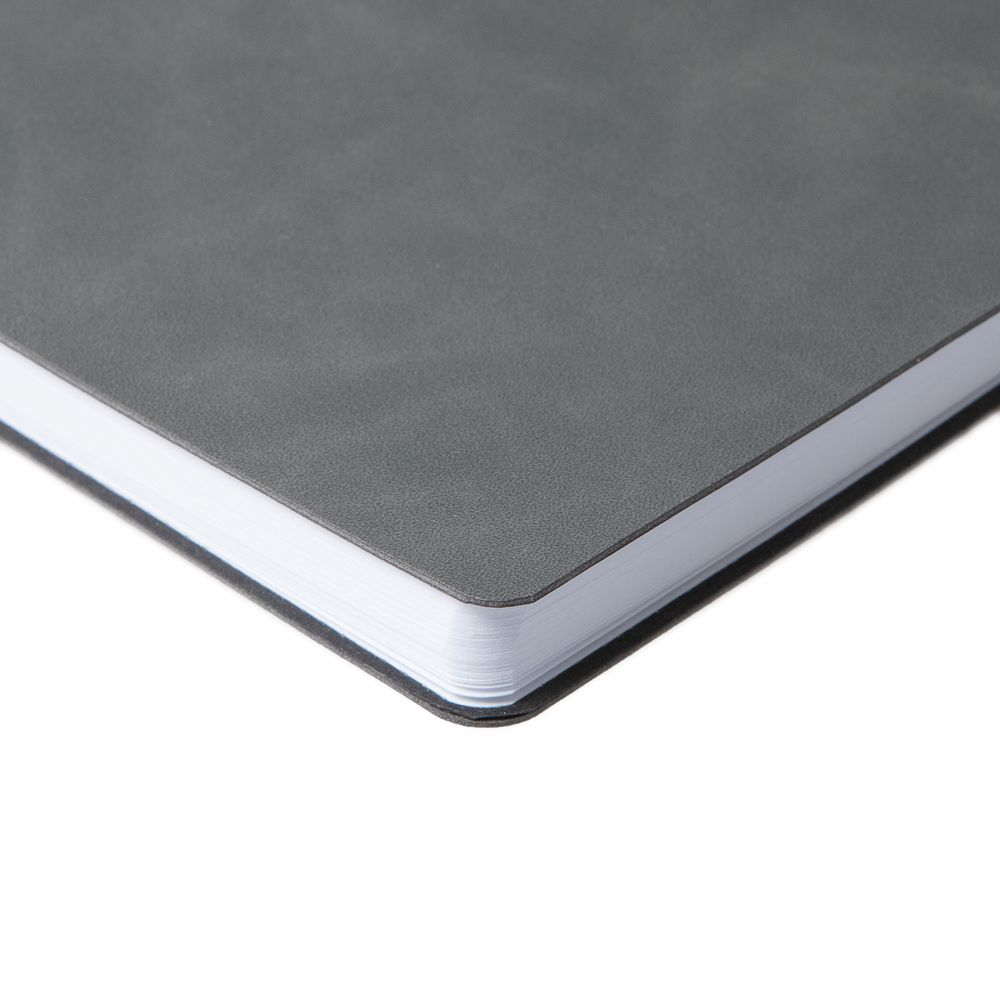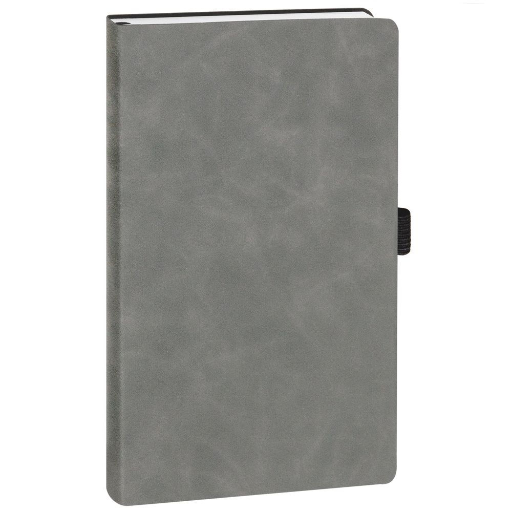 Ежедневник с гибкой обложкой, выполнен из материала Nubuck Touch, темно-серый EE, дополнен ляссе и петлей-резинкой для ручки черного цвета.