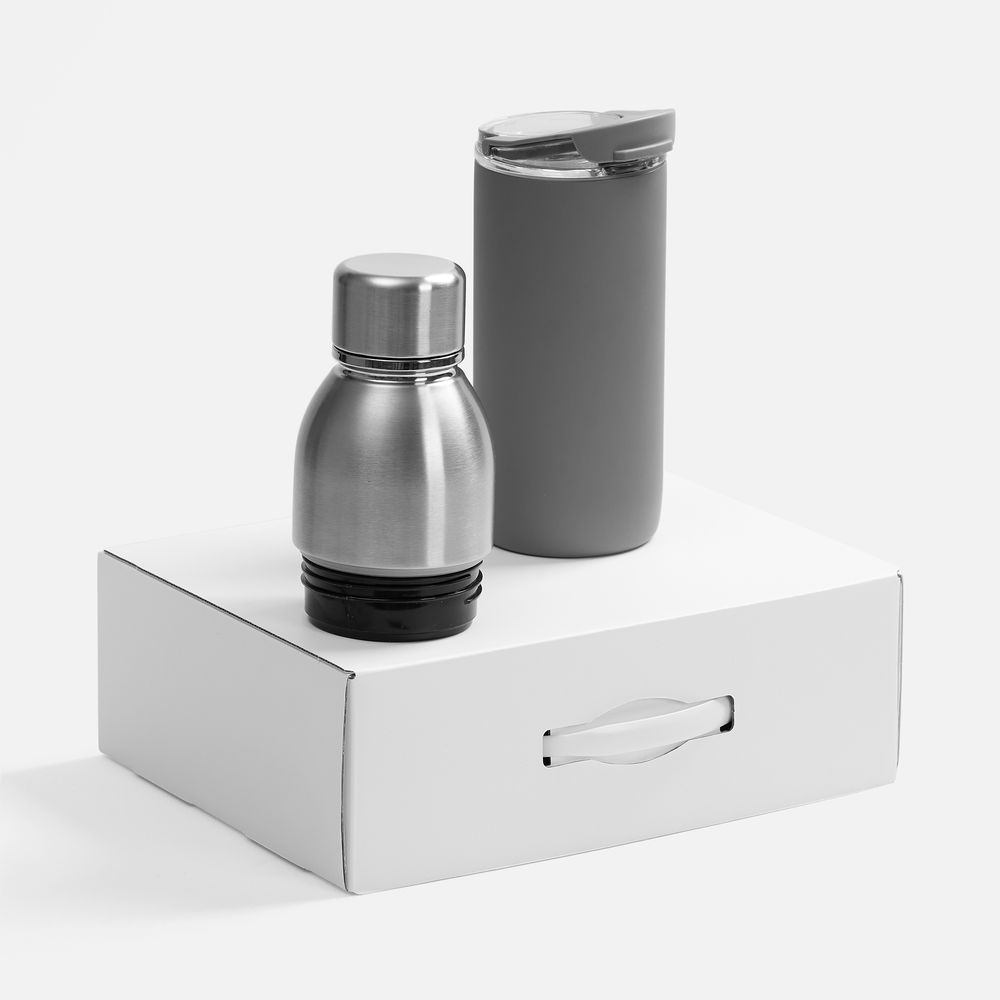 Varianti — это яркий пример посуды с двойной функциональностью. Один и тот же корпус можно превратить как в термостакан для чая и кофе с пластиковой крышкой, так и в термобутылку для прохладительных напитков — с крышкой стальной.