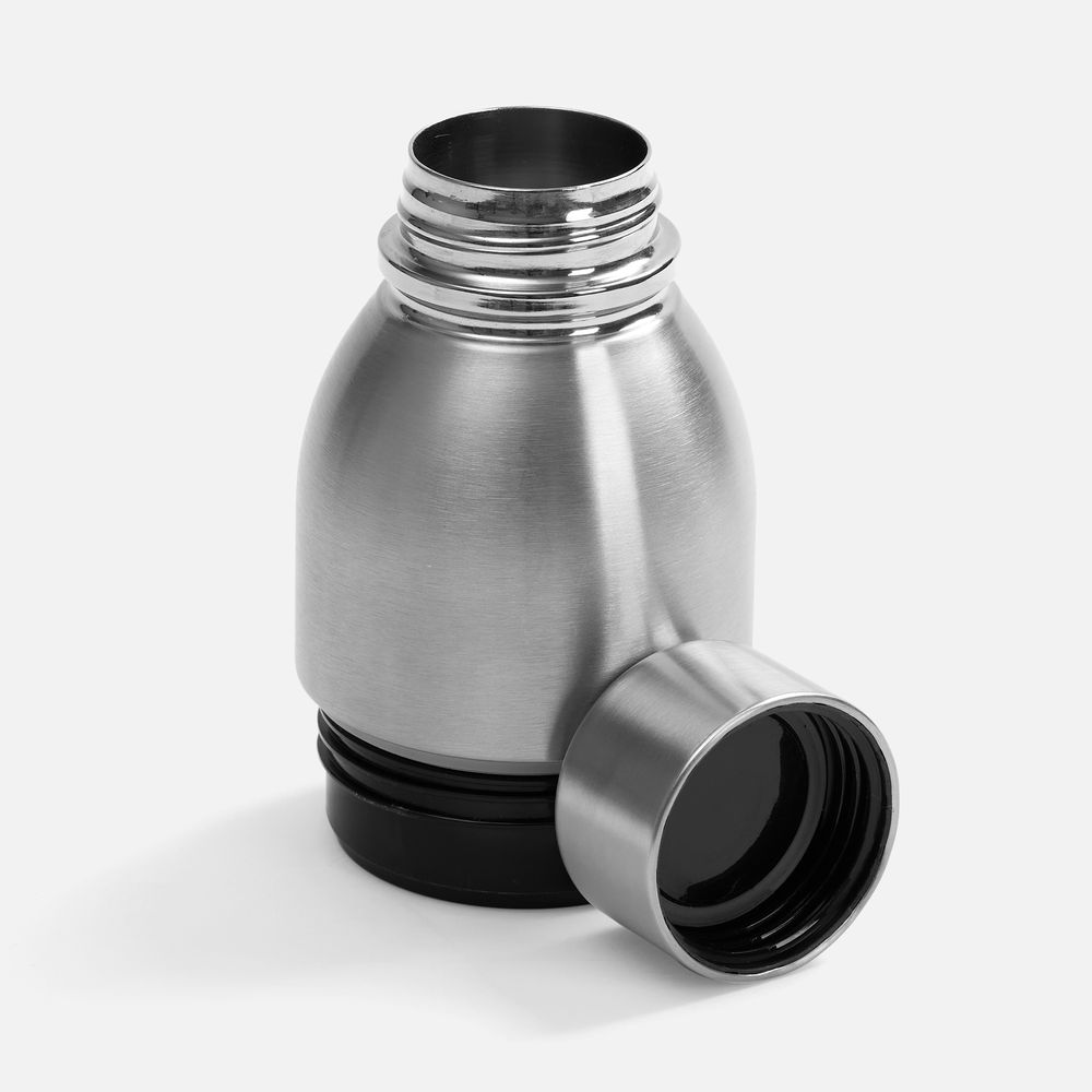 Varianti — это яркий пример посуды с двойной функциональностью. Один и тот же корпус можно превратить как в термостакан для чая и кофе с пластиковой крышкой, так и в термобутылку для прохладительных напитков — с крышкой стальной.