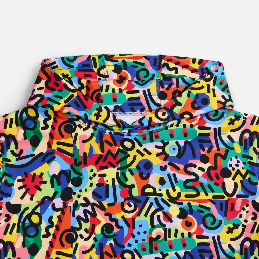 Одежда с печатью рисунка в крое, известной также как all-over или seamless print, предполагает нанесение стойкого полноцветного рисунка (паттерна или узора, не требующего совмещения) на ткань методом сублимации еще до этапа пошива. Такой способ брендирования отличается от печати на готовой одежде и имеет свои уникальные преимущества: