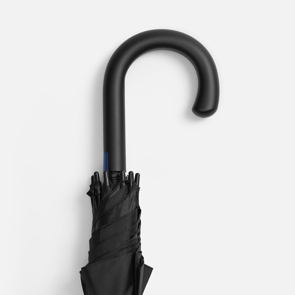 Легкий и невероятно прочный каркас из стеклопластика не боится порывов ветра. Сдержанный дизайн оживляет яркая деталь: цветные акценты на каркасе видны только при раскрытии зонта.