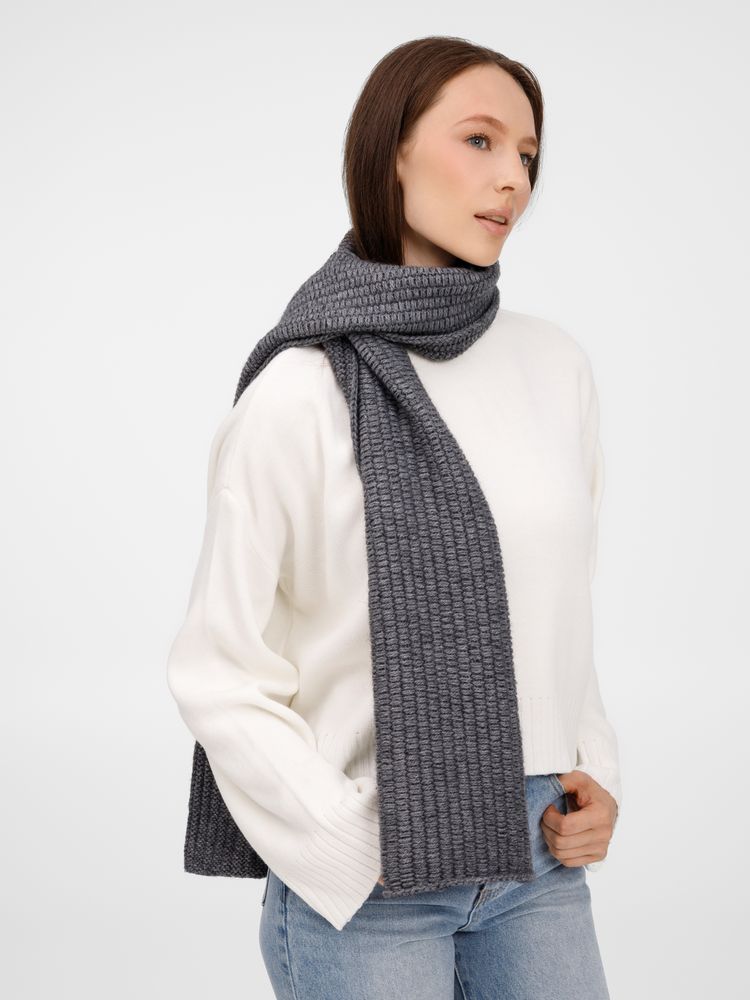 Однослойный шарф Frissonelle фактурной вязки — универсальный аксессуар: полушерстяная пряжа с выразительным рельефным узором создает объем, даря тепло и ощущение уюта. Сдержанная палитра и лаконичный дизайн делают его гармоничным дополнением к пальто, куртке или пуловеру.