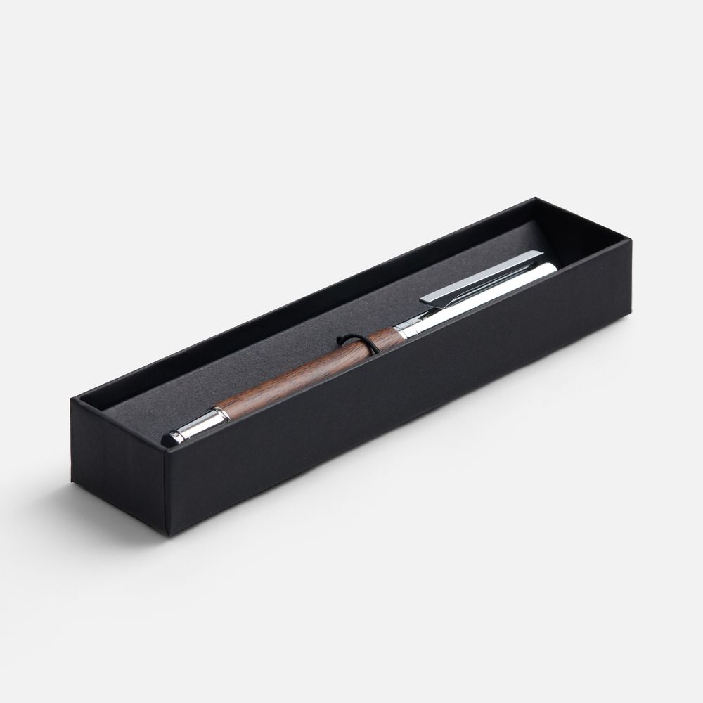 Роллер Waldo — сочетание элегантности и надежности. Корпус роллера выполнен из хромированного металла и дополнен ореховым деревом, что придает изделию неповторимый теплый оттенок и естественную текстуру.