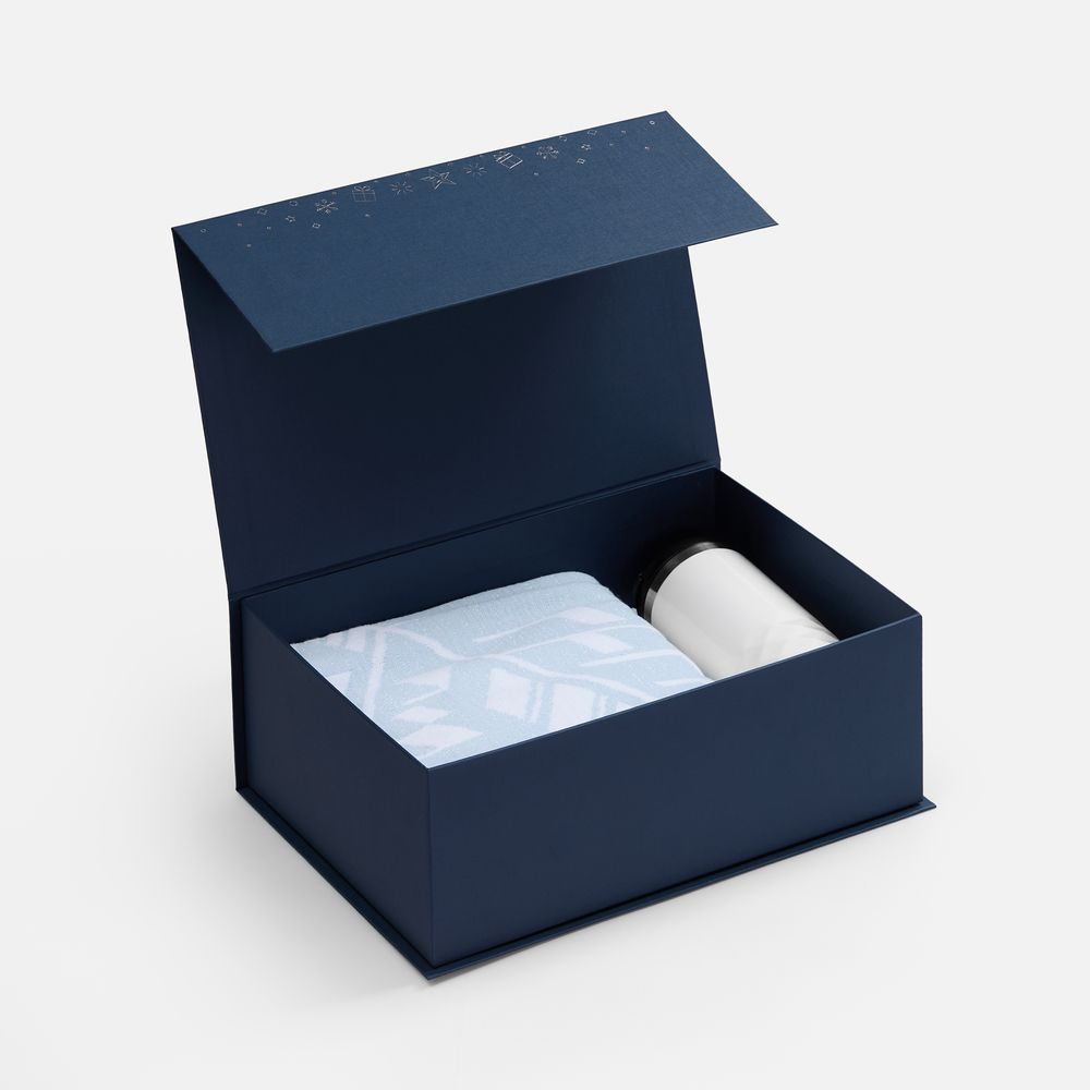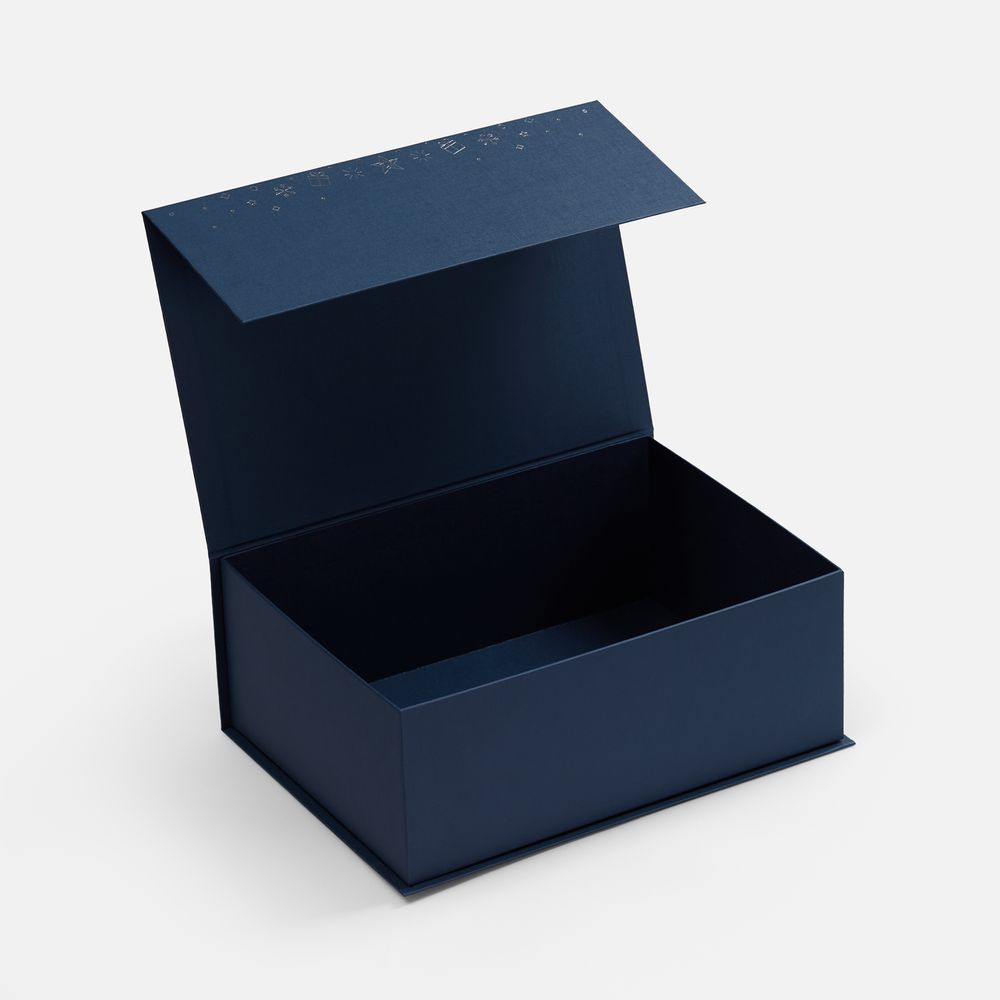Подарочная коробка Snowlace с новогодним паттерном станет стильным дополнением к праздничному презенту. Коробка выполнена из переплетного картона толщиной 1,5 мм, кашированного бумагой с тиснением серебристой фольгой.
