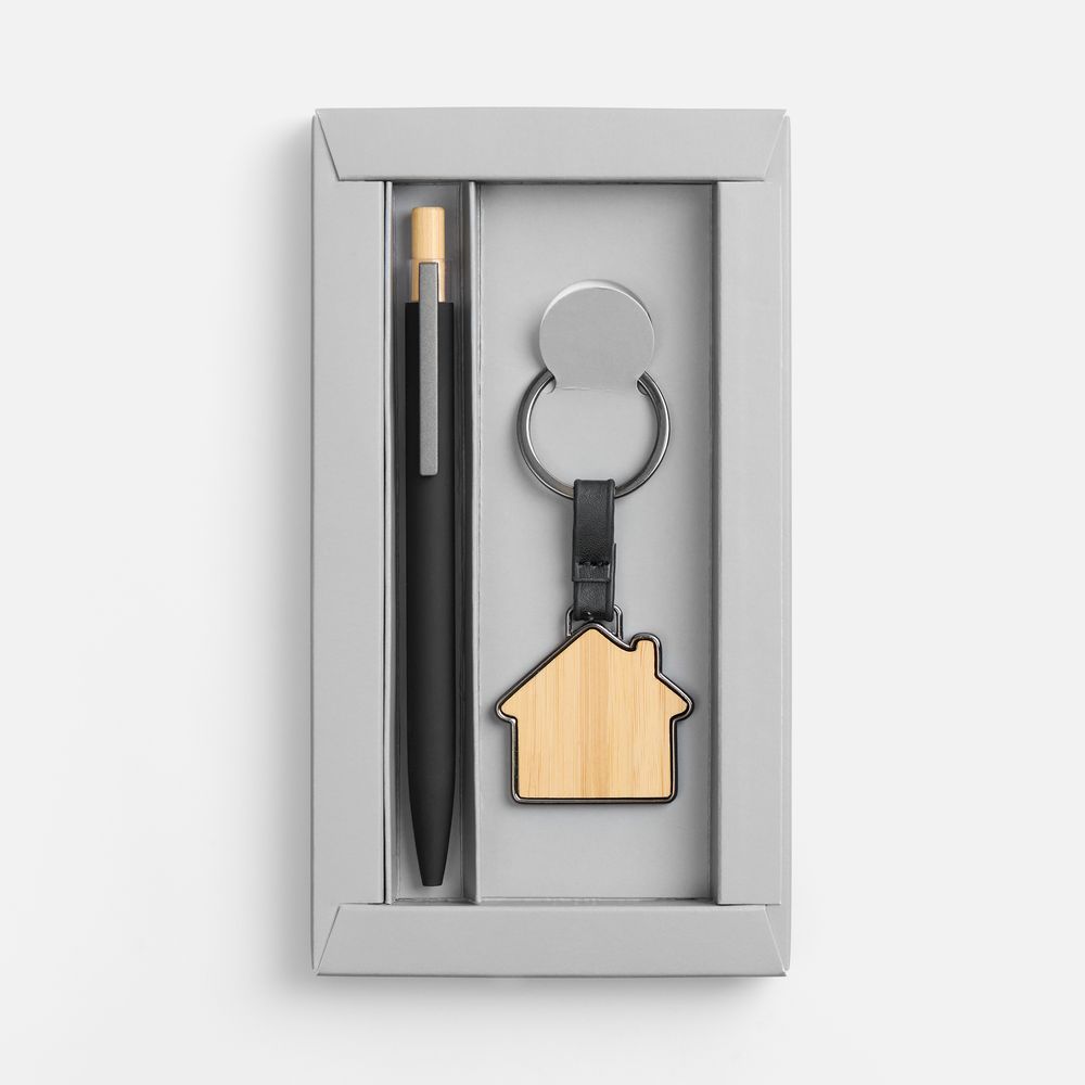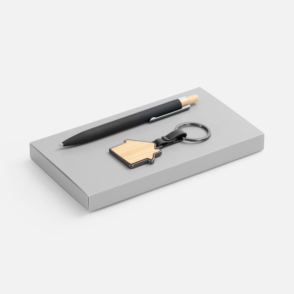Bambicore — гармоничный сочетание ручки и брелока, объединенных бамбуковыми деталями. Естественный стиль и практичность в одной элегантной коробке.