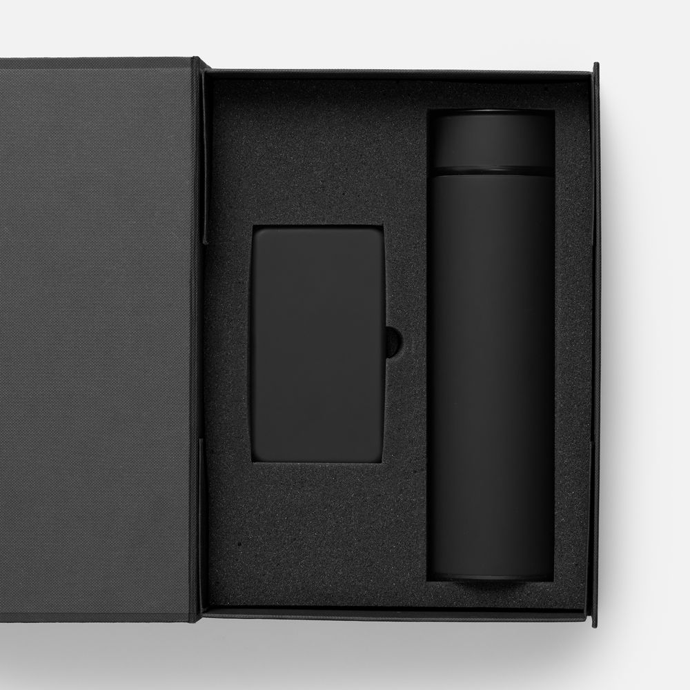 • Материал: аккумулятор - пластик; покрытие софт-тач; термос - нержавеющая сталь, 304; покрытие софт-тач; коробка - переплетный картон