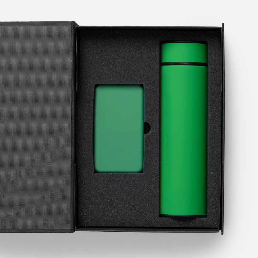 • Материал: аккумулятор - пластик; покрытие софт-тач; термос - нержавеющая сталь, 304; покрытие софт-тач; коробка - переплетный картон