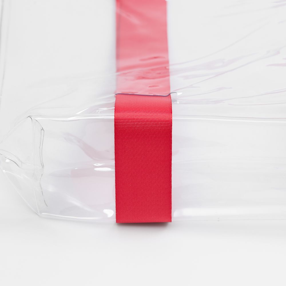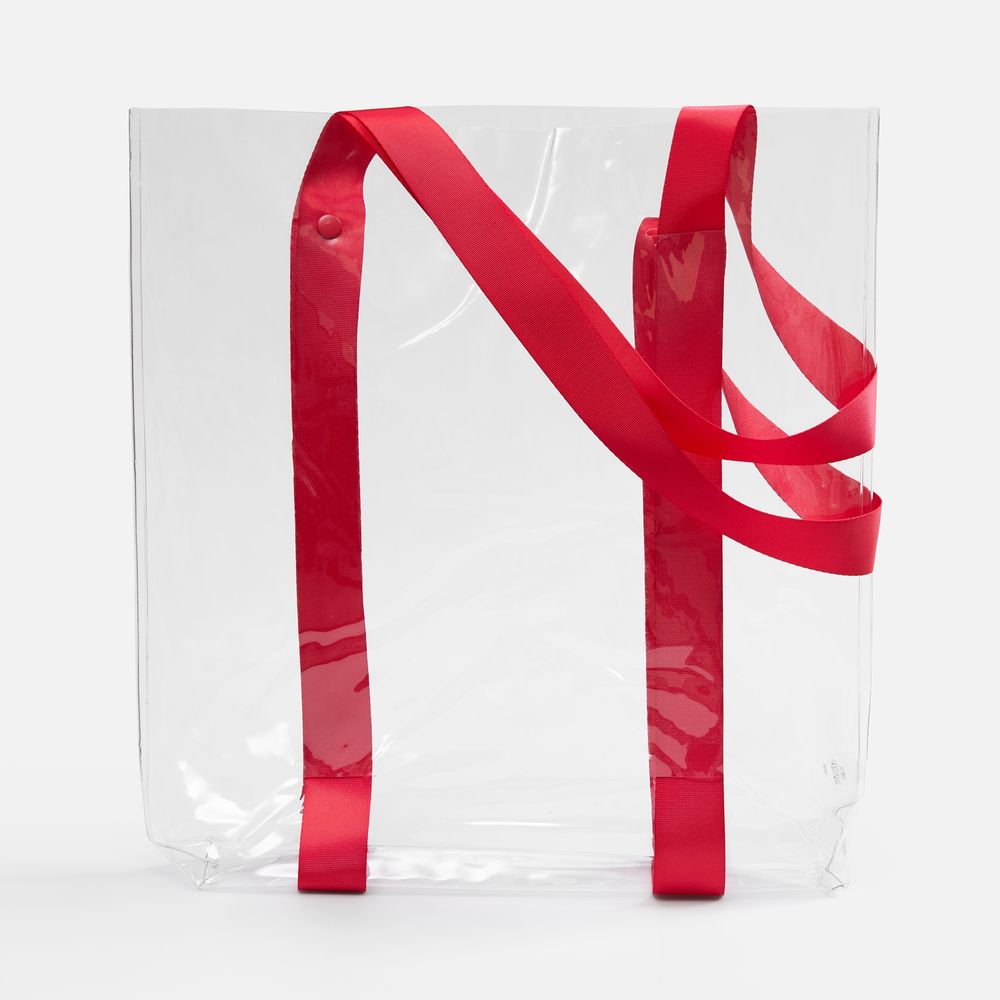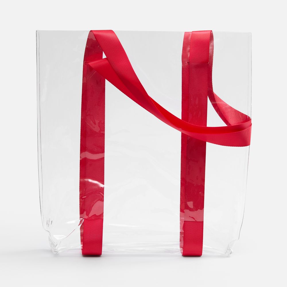 Прозрачные сумки никогда не выйдут из моды. А цветные ручки легко впишутся в брендбук и точно передадут настроение, которое хотелось бы транслировать.