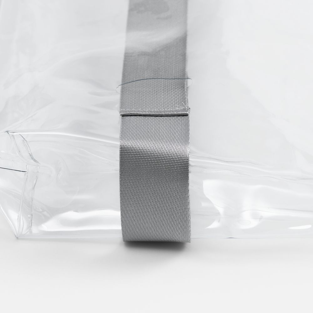 Прозрачные сумки никогда не выйдут из моды. А цветные ручки легко впишутся в брендбук и точно передадут настроение, которое хотелось бы транслировать.