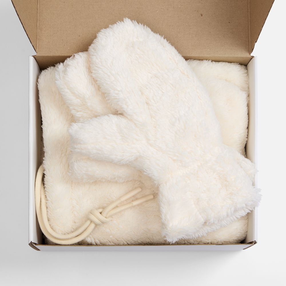 • Материал: балаклава - полиэстер 100%, плотность 280 г/м², длинноворсовый флис; варежки - полиэстер 100%, плотность 280 г/м², длинноворсовый флис; коробка - микрогофрокартон, плотность 385 г/м²