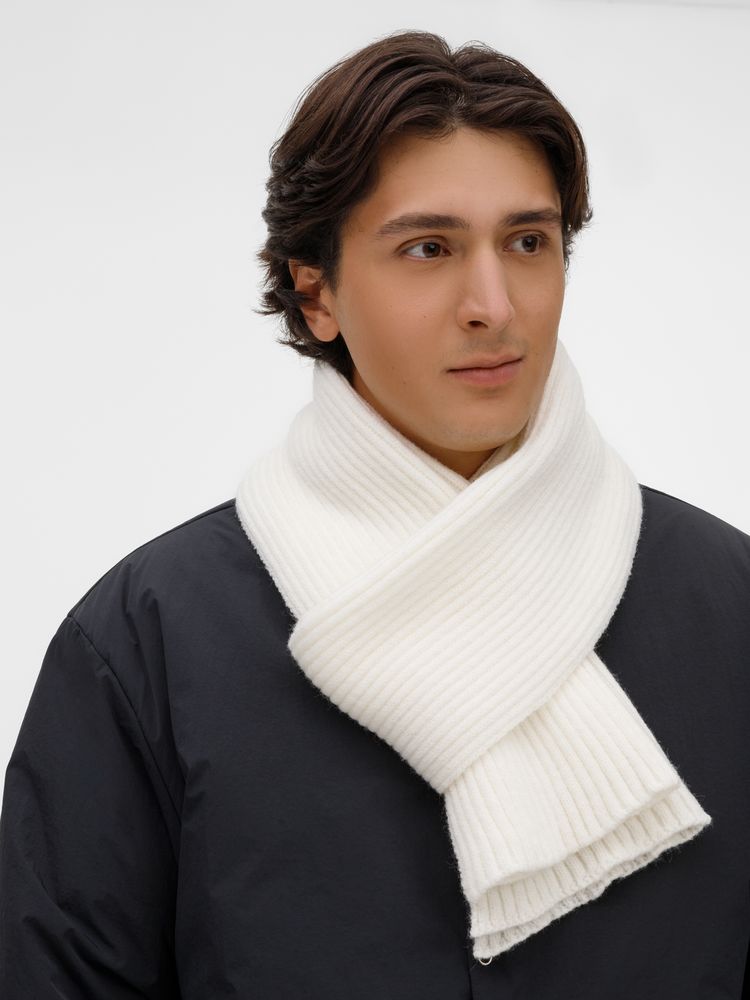 Рельефный шарф актуальных приглушенных оттенков будет универсален как для мужчин, так и для женщин. Оптимальный по длине и ширине, он подойдет для разных вариантов драпировки, а значит, привнесет разнообразие в повседневный стиль.