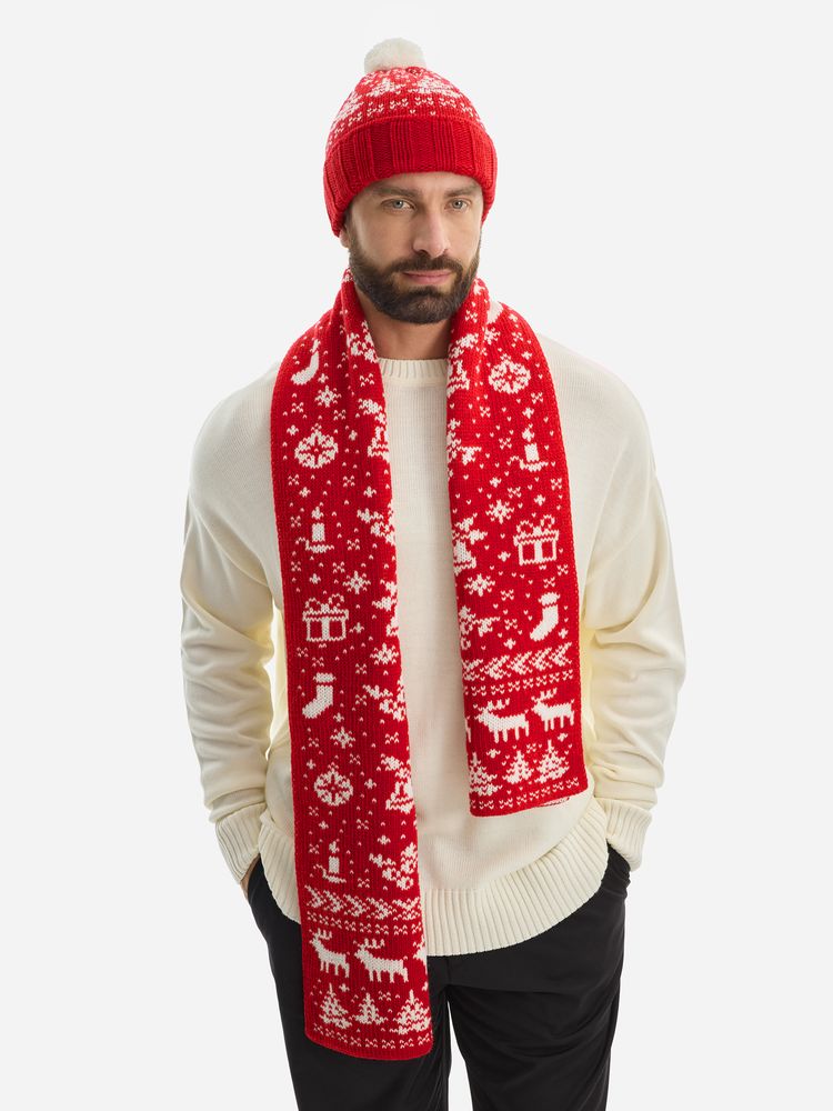 Этот шарф станет не просто согревающим дополнением к зимнему гардеробу, но и настоящим новогодним подарком, который несет в себе тепло и радость. Яркий, выразительный и невероятно уютный — он поможет создать праздничное настроение даже в самый хмурый зимний день.