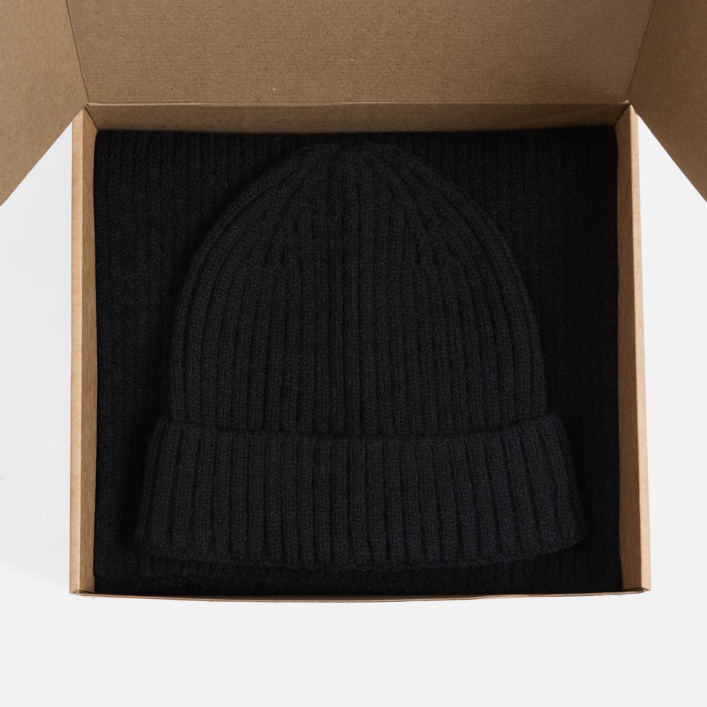 Шапку можно носить двумя способами: плотно прилегающей к голове или слегка приподнятой на макушке для создания современного силуэта. Шарф оптимальной длины и ширины позволяет экспериментировать с вариантами драпировки. Набор станет идеальным спутником для городских прогулок и поможет создать элегантный образ без лишних деталей.