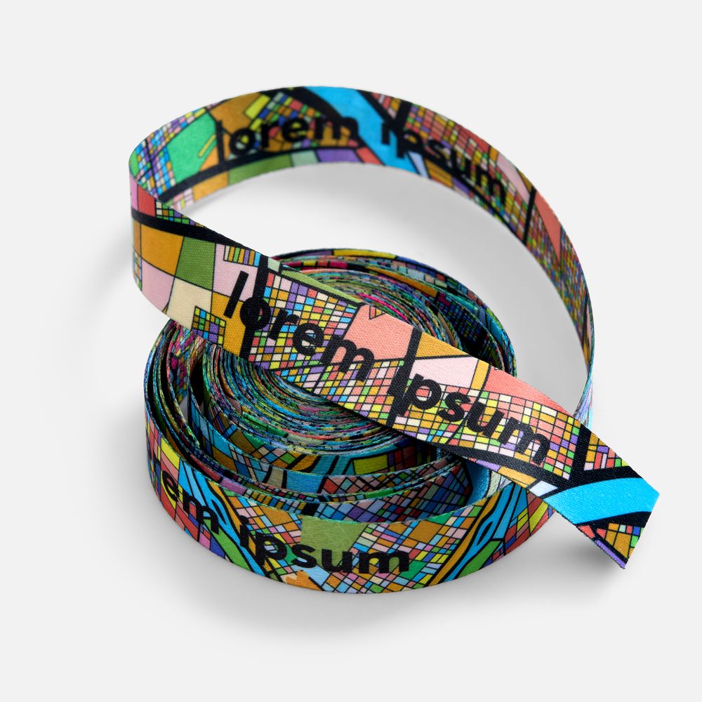 На ленте можно делать запечатку с двух сторон с помощью сублимационной печати (SB), которая позволяет получить стойкое полноцветное изображение фотографического качества. Сублимационная лента с печатью станет отличным носителем рекламы , элементом корпоративного стиля или частью оформления сувенирной продукции.