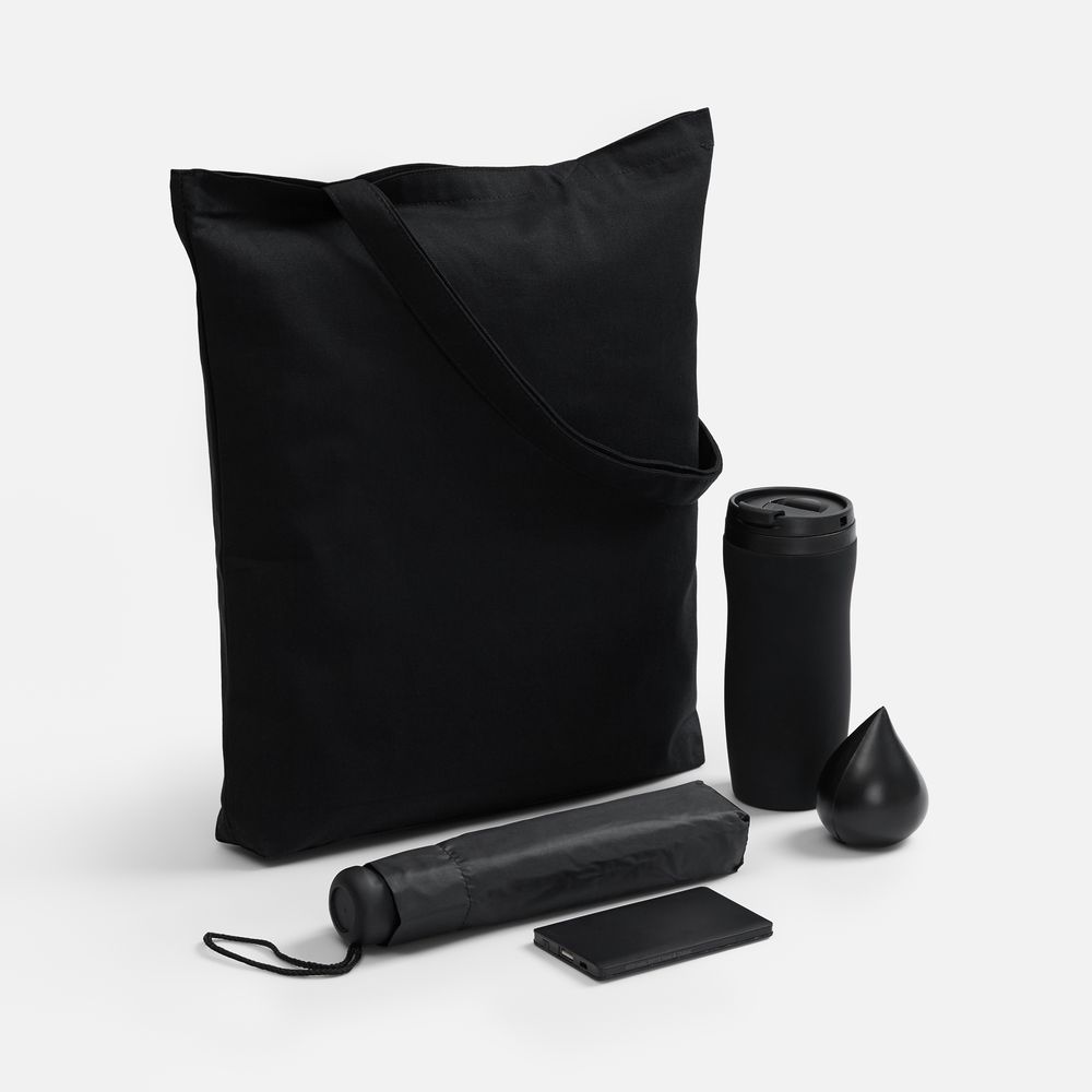 • Материал: зонт - полиэстер 190T, ручка - пластик; покрытие софт-тач; каркас, спицы - металл; аккумулятор - пластик; крышка термостакана, внутренняя колба - пластик, корпус - нержавеющая сталь; покрытие софт-тач; сумка - хлопок 100%, плотность 210 г/м²; антистресс - вспененный полиуретан