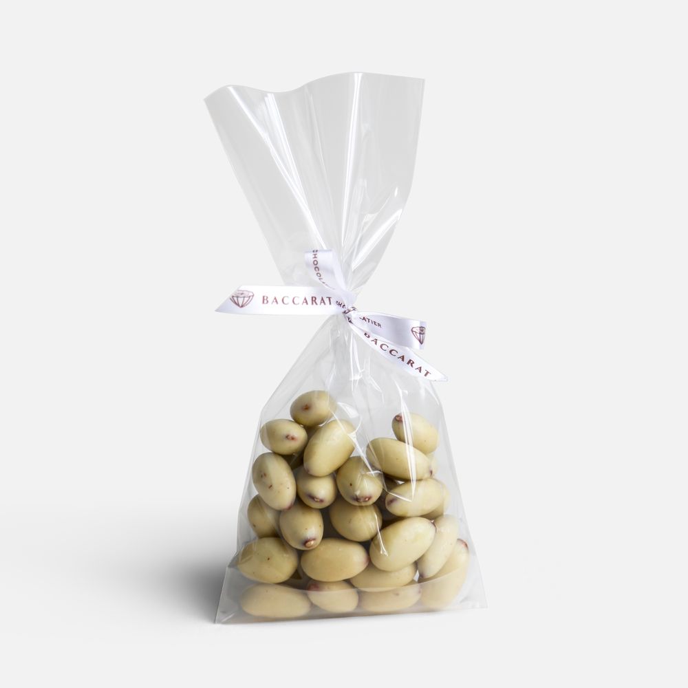 Цельный миндаль в тонкой хрустящей оболочке из белого бельгийского бельгийского шоколада — нежное, сливочное удовольствие с легкой ореховой текстурой. Идеально для сладких моментов и подарков.