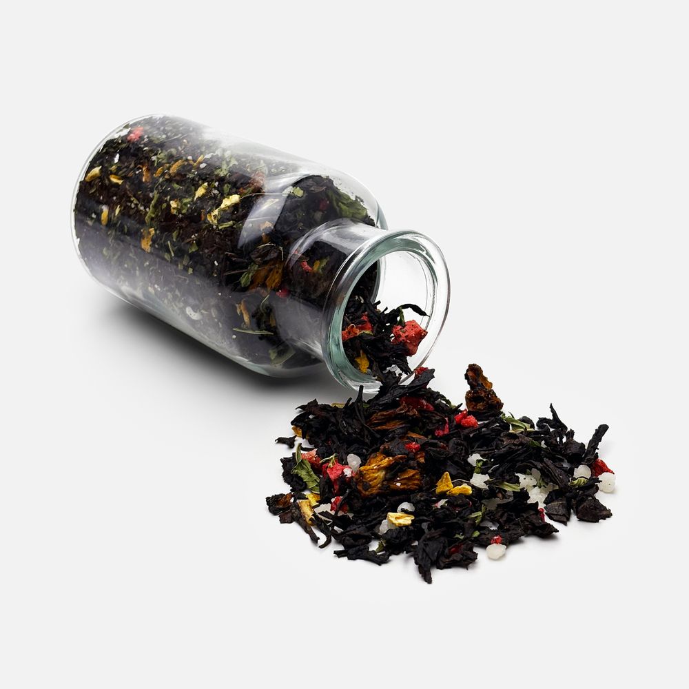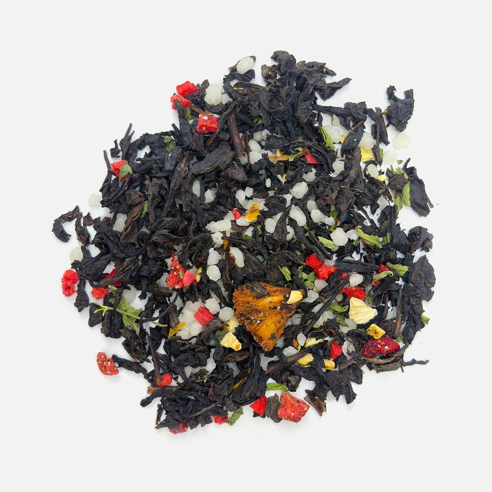 Состав: чай черный с ананасом и соком ананаса (чай черный байховый крупнолистовой, кусочки ананаса, сок ананаса), клубника сублимированная, мята сушеная, медовые гранулы, цедра лимона, ароматизатор натуральный Арбуз, ароматизатор натуральный Лимон.