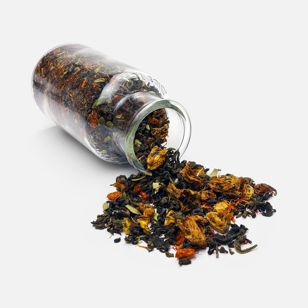 Зеленый крупнолистовой чай с соком ананаса, облепихой, толокнянкой и сафлором обладает многогранной палитрой вкуса и аромата. В состав чая входят только натуральные ингредиенты, а чайные листья предварительно вымачиваются в соке ананаса: вкус напитка становится особо насыщенным и обогащенным. «Сокочай» станет прекрасным подарком для любителей необычных вкусовых сочетаний и здорового образа жизни.