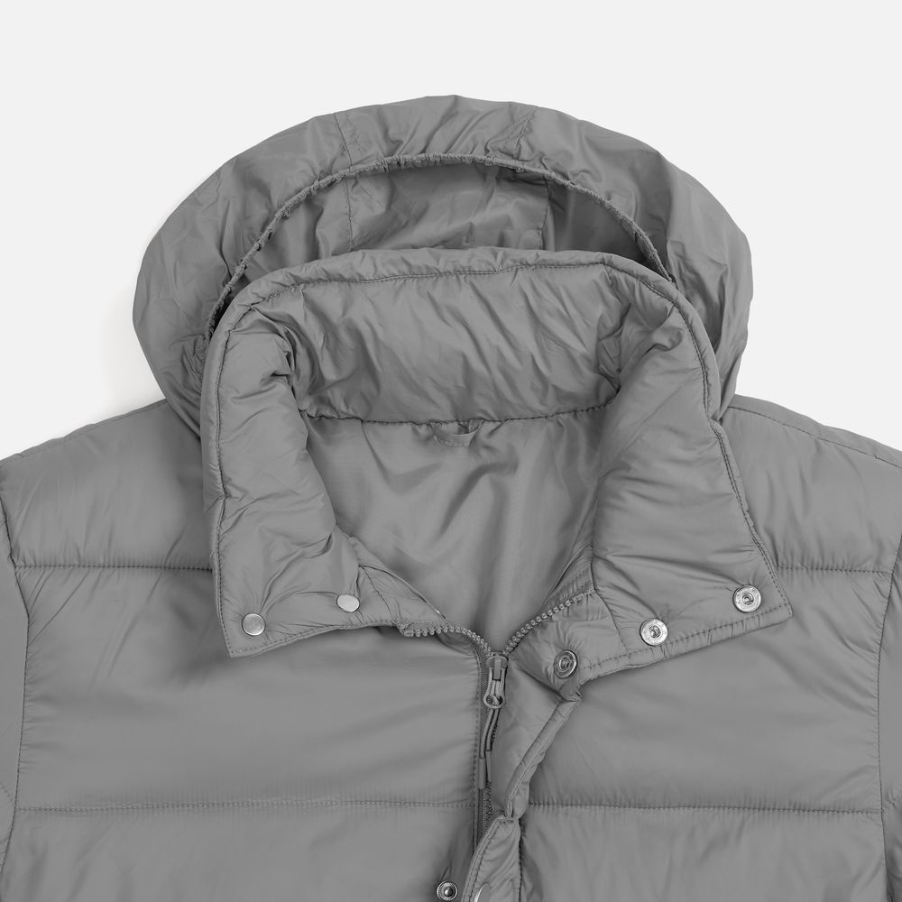 • Капюшон без подкладки убирается в воротник и плотно фиксируется на потайные кнопки
