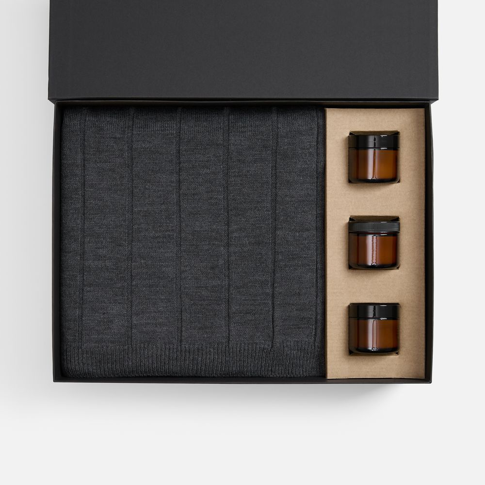 Набор Aromagia — готовое решение для укрепления деловых отношений с самым теплым посылом. Мягкий плед и три изысканных аромасвечи подарят атмосферу тепла, праздника и беззаботности.Aromagia. Дань уютным традициям и современному стилю.