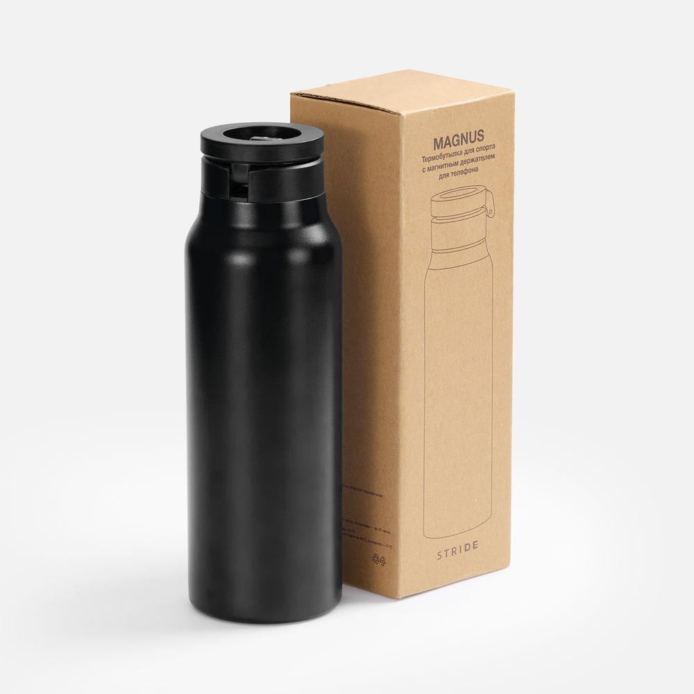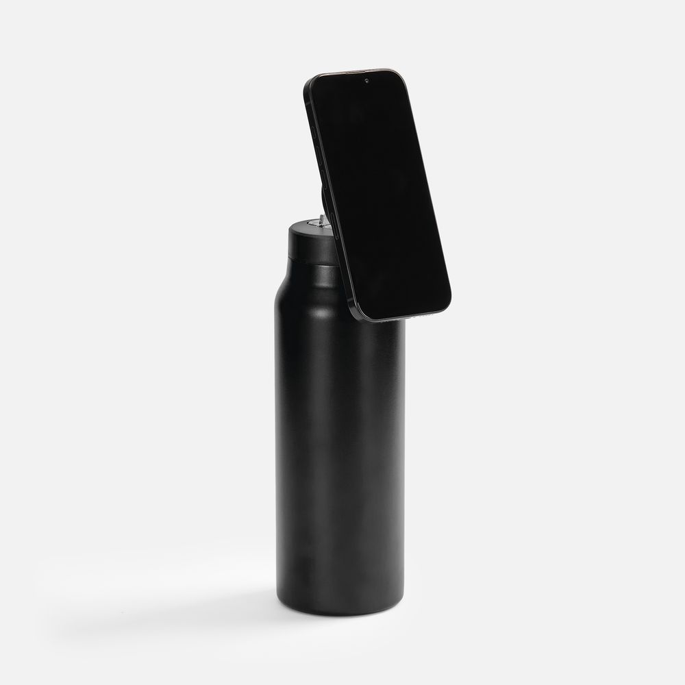 Главная особенность Magnus — магнитное кольцо в крышке, которое превращает бутылку в функциональный гаджет. Оно позволяет закрепить смартфон прямо на бутылку, чтобы смотреть тренировочные видео, повторять упражнения, снимать контент или использовать навигацию. Не нужно искать опору или держать телефон в руках — все уже продумано.