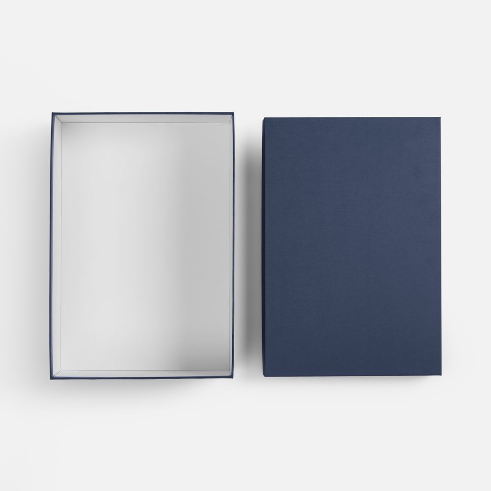 Коробка изготовлена из переплетного картона, кашированного дизайнерской бумагой.