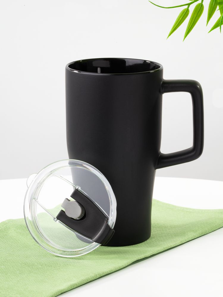 Эргономичная ручка удобно лежит в руке, а прозрачная крышка с отверстием для питья не дает содержимому разлиться на ходу или быстро остыть. Последнее особенно важно с учетом большого объема — 520 мл чая, кофе или какао хватит надолго.
