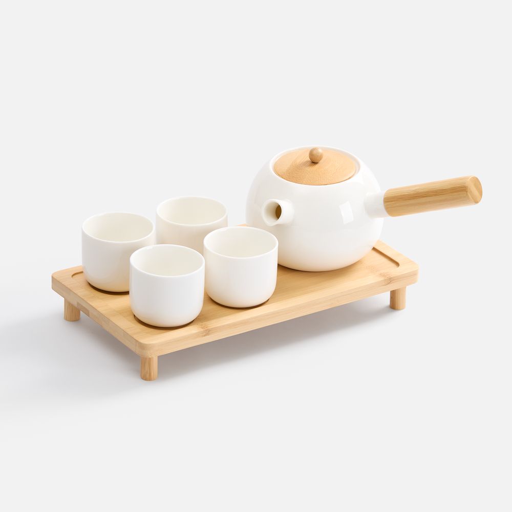Сочетание белой глазурованной керамики и бамбука ассоциируется со спокойствием, аккуратностью и продуманным минимализмом — удачная современная комбинация японской эстетики и скандинавской простоты.Емкость чайника 550 мл.