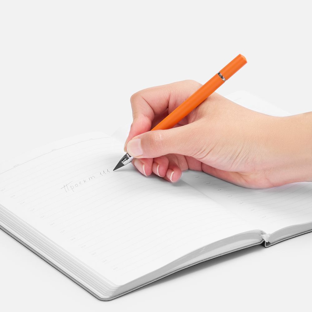 Изготовленный из сплава графита со свинцом долговечный наконечник карандаша не требует заточки, а закончившийся стержень в ручке легко заменить. Оба наконечника закрываются защитными колпачками.