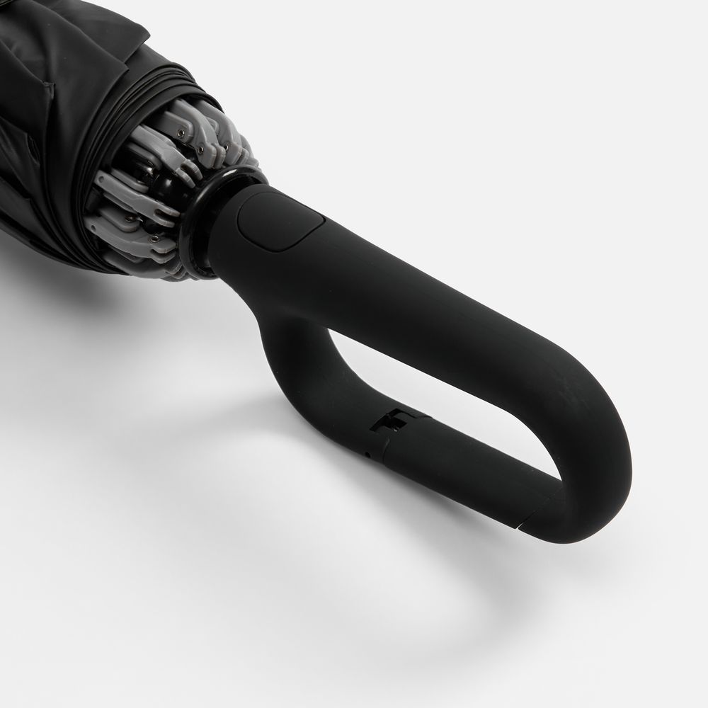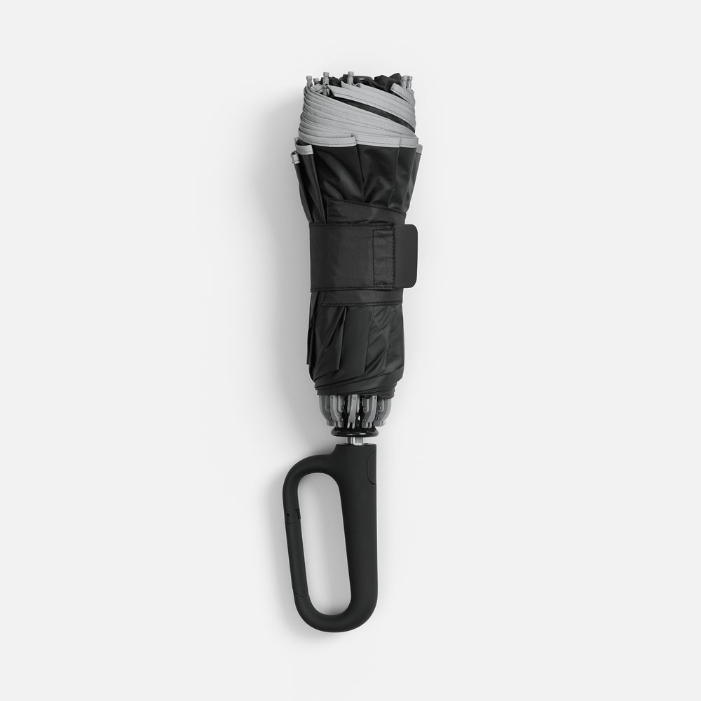 Складываясь после дождя, зонт прячет мокрую поверхность внутри, а сухая остается снаружи: так в закрытом положении он не побеспокоит окружающих и не намочит одежду. За ручку-карабин зонт удобно подвесить, например, на рюкзак.