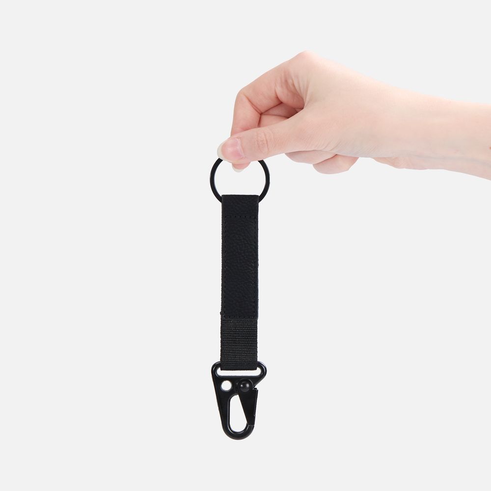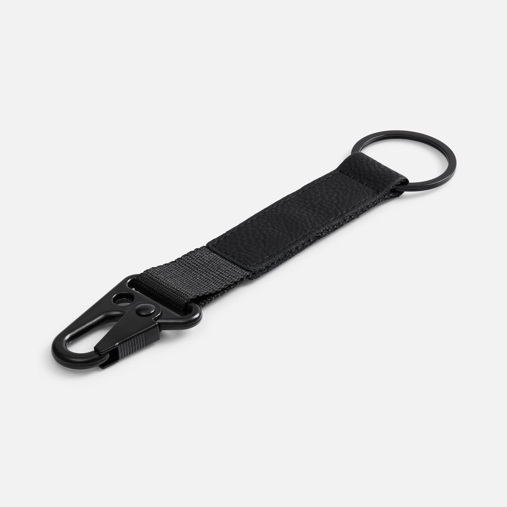 Брелок из ткани и искусственной кожи с кольцом и карабином. Удобная конструкция позволит быстро пристегнуть или отстегнуть ключи и другие аксессуары, а декоративная накладка станет прекрасным местом для нанесения логотипа.