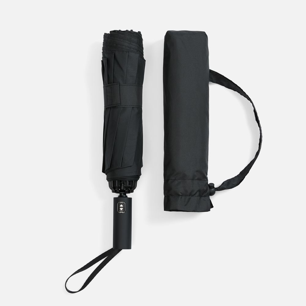 Складываясь после дождя, зонт прячет мокрую поверхность внутри, а сухая остается снаружи: так в закрытом положении он не побеспокоит окружающих и не намочит одежду. В сложенном виде зонт компактен, а благодаря чехлу-сумке на кулиске его удобно носить с собой.