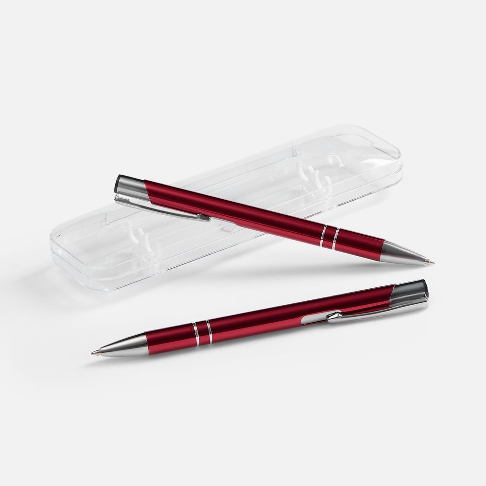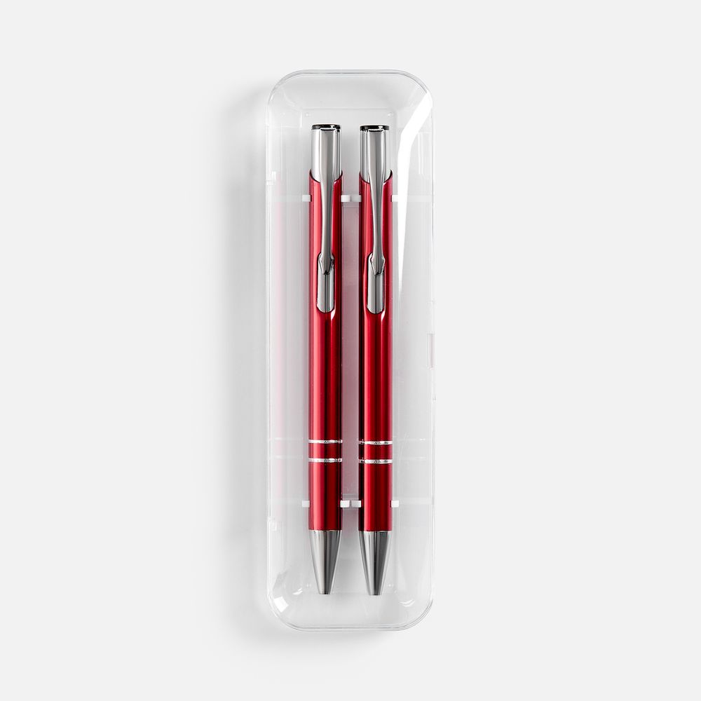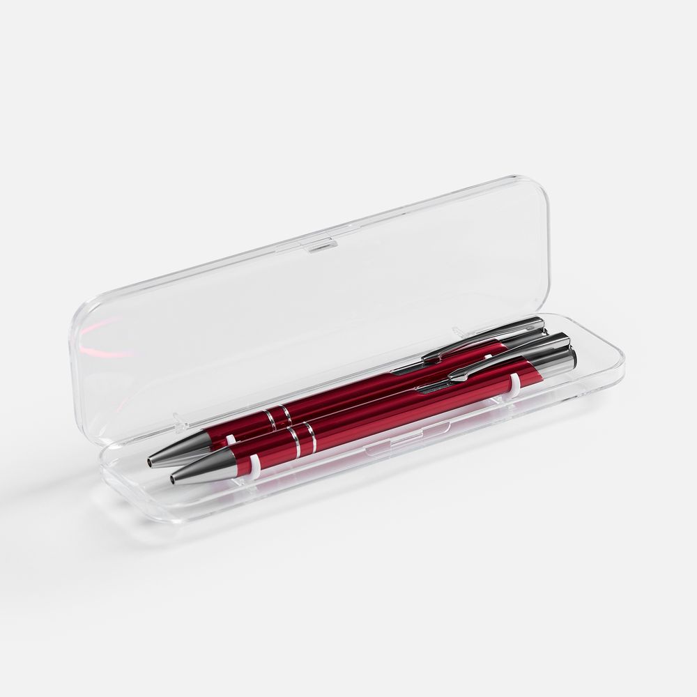 Набор из двух глянцевых ручек Keskus в прозрачном пластиковом футляре.