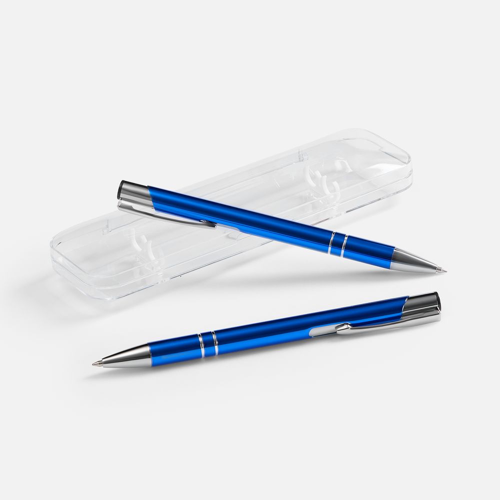 Набор из двух глянцевых ручек Keskus в прозрачном пластиковом футляре.