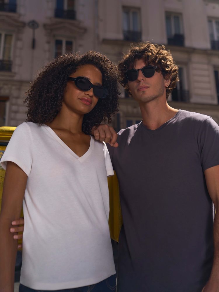 Женская футболка Regent с V-образным вырезом. Такой вырез снова актуален: он визуально удлиняет шею, подчеркивает линию ключиц и добавляет образу легкости.