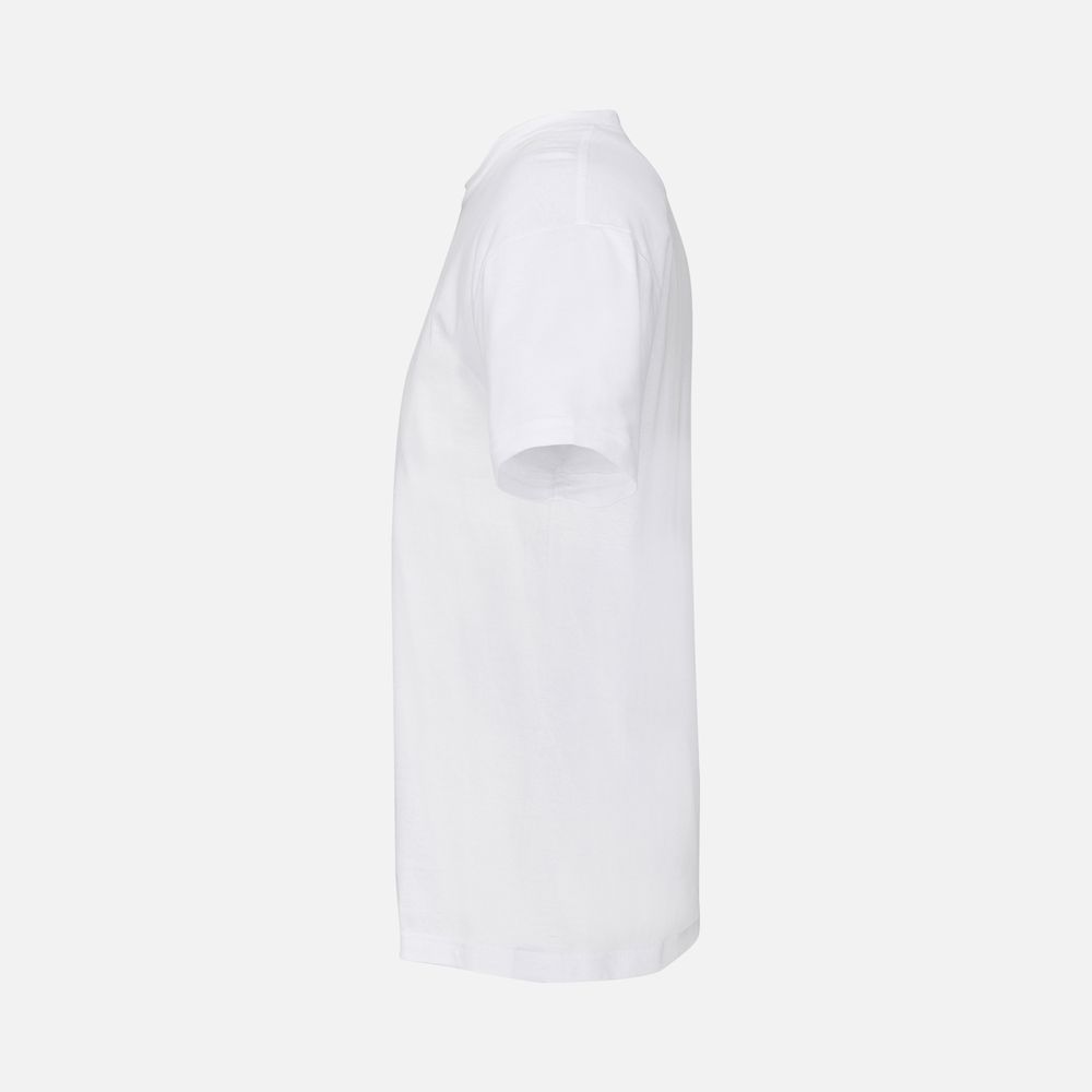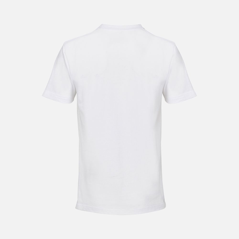 Ткань хорошо держит форму и не просвечивает, при этом футболка остается мягкой и приятной к телу. Особенности обработки волокна и конструкция с заметной высокой горловиной создает аутентичный образ с винтажной фактурой.
