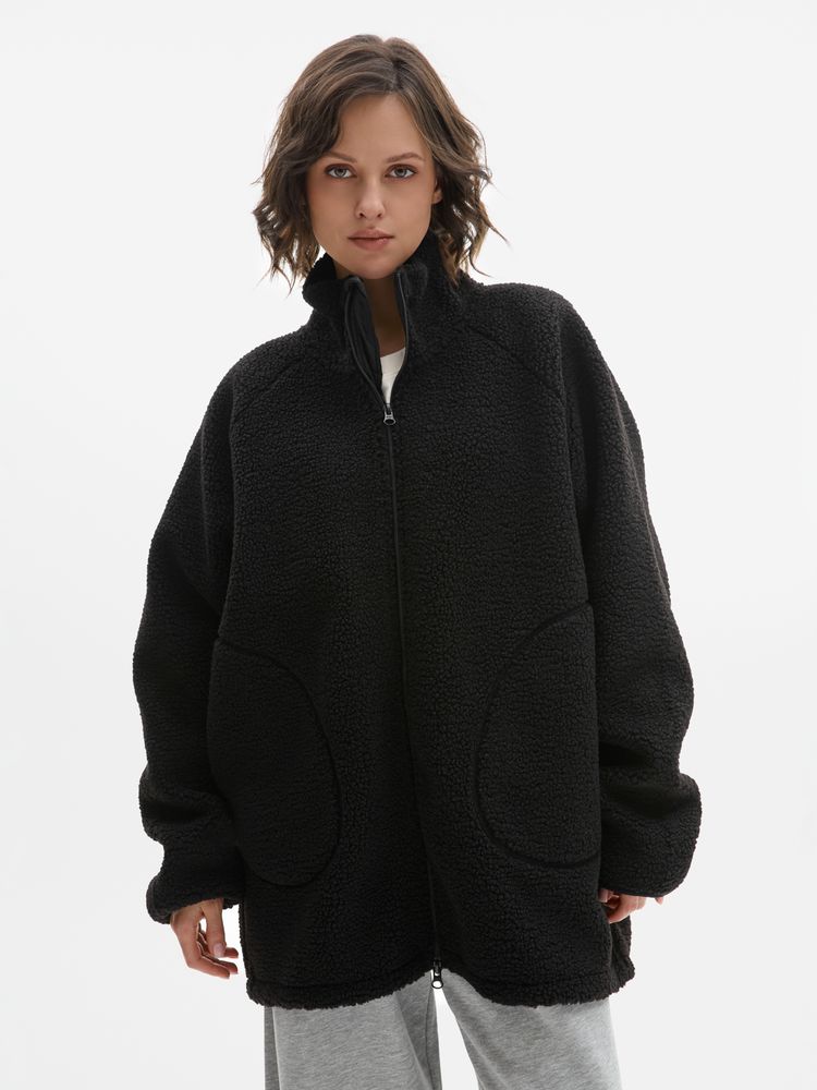 Свободный силуэт с рукавами-реглан обеспечивает удобную посадку и свободу движений, а воротник-стойка дополнительно защищает от ветра. Продуманная конструкция дополнена ветрозащитной планкой под молнией и эластичной лентой по краю изделия, что помогает лучше сохранять тепло.