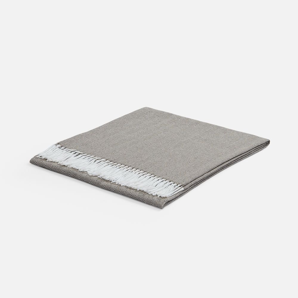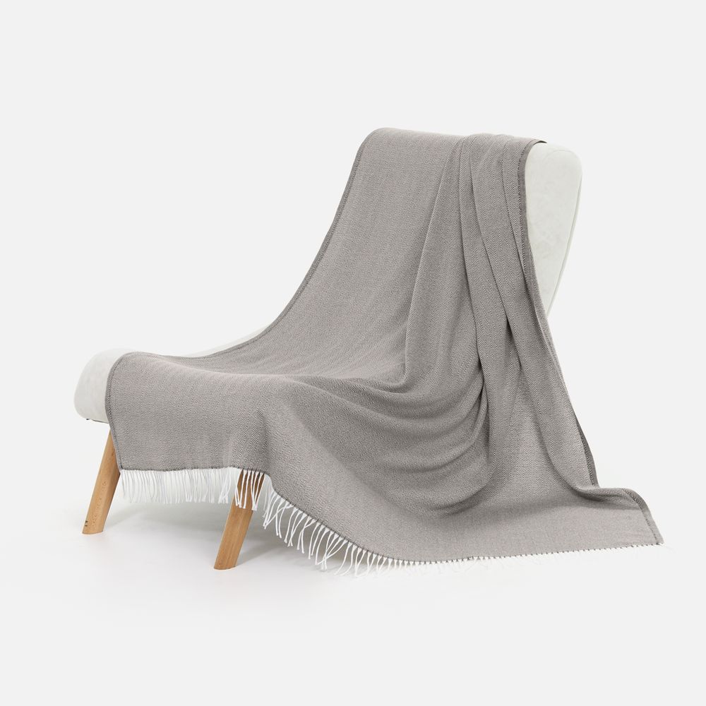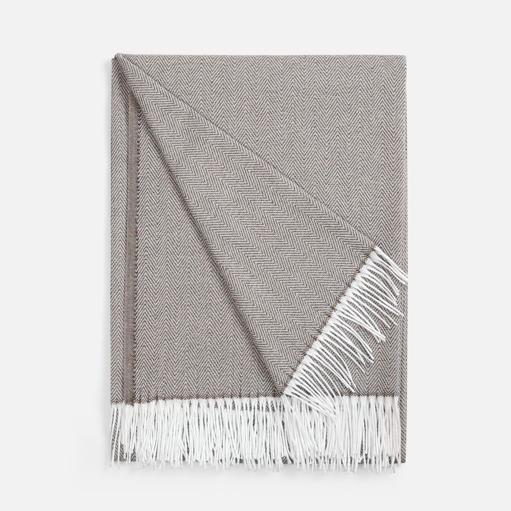 Классический рисунок «елочка» не слишком привлекает внимание, но в то же время добавляет изюминки. Смешанный состав пряжи продлевает срок службы и существенно облегчает уход за пледом.