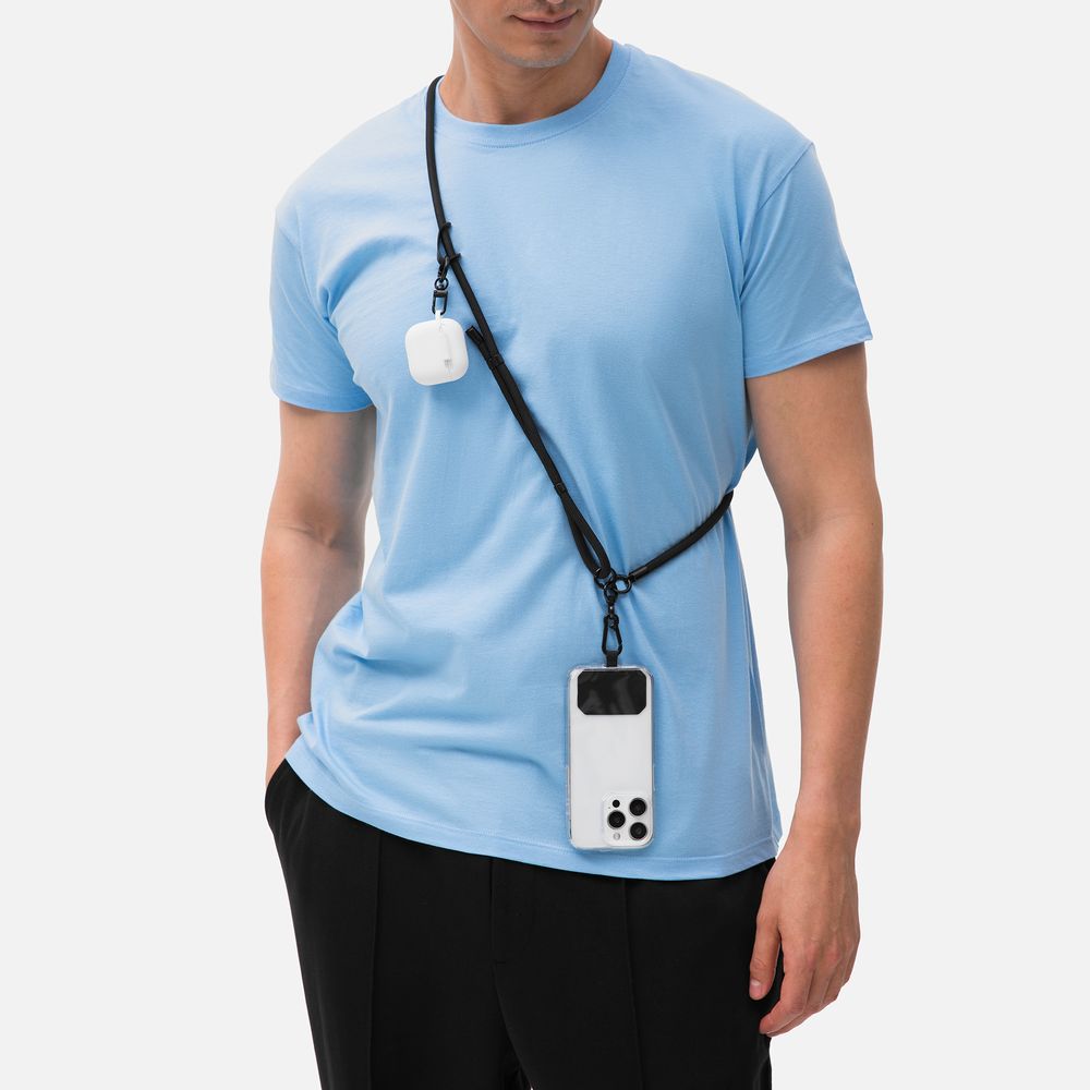 Шнурок для мобильного телефона через плечо с креплением под чехол. Для крепления телефона на ланьярд телефон должен иметь чехол. Регулируемый ремешок с петелькой для мелочей.
