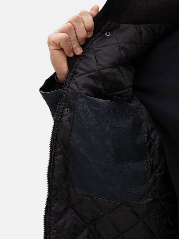 • Капюшон с утягивающими шнурами, складывается и убирается в воротник