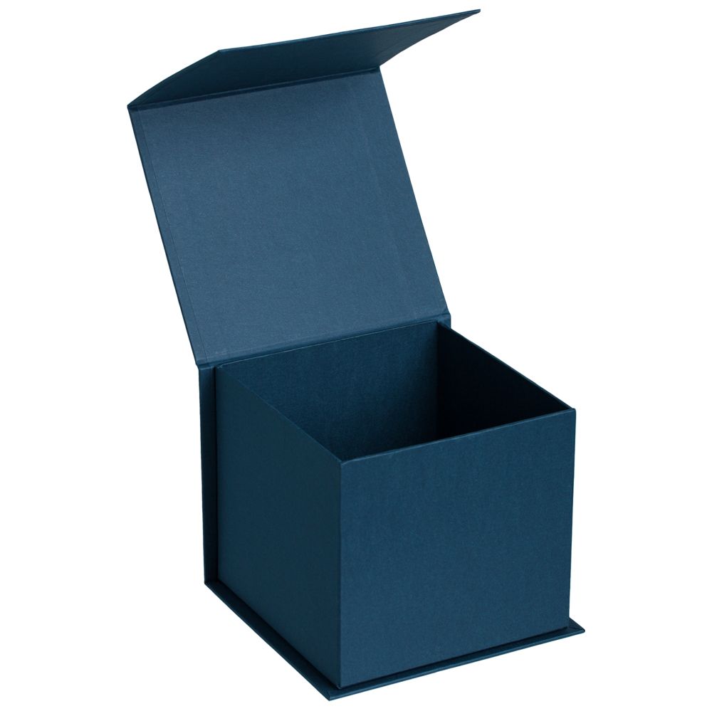Изготовлена из переплетного картона 1,5 мм, кашированного дизайнерской бумагой Malmero «Благородный синий». Крышка на магните.Конструкция коробки предусматривает наличие технологического зазора шириной до 2 мм по линии сопряжения короба и крышки.