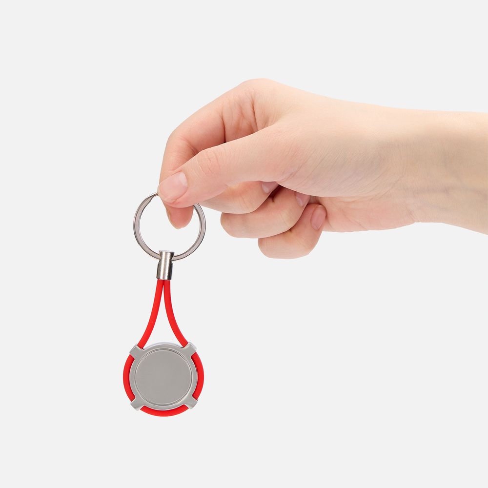 Элегантный круглый металлический брелок с декором из силикона. Поставляется в индивидуальной упаковке.