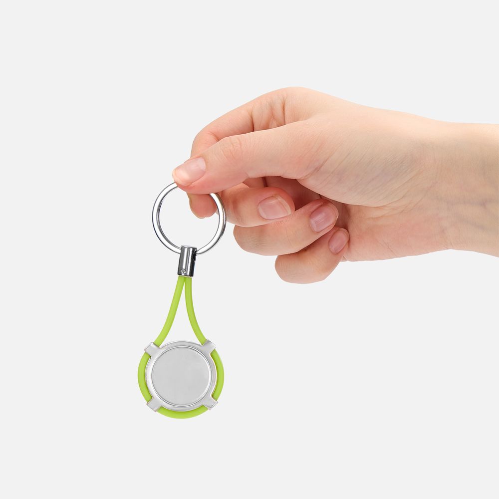 Элегантный круглый металлический брелок с декором из силикона.