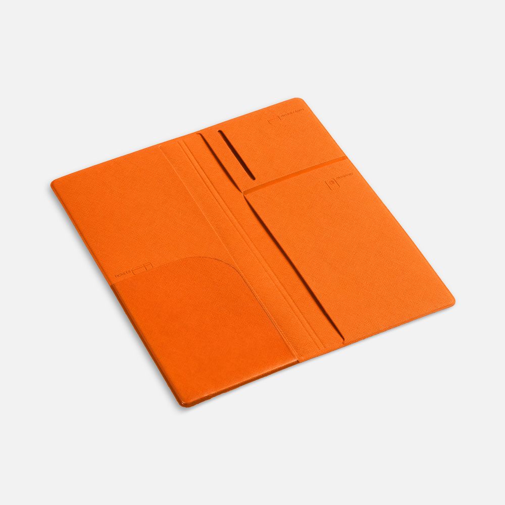 Органайзер из искусственного материала, имитирующего сафьяновую кожу, имеет 5 отделений: для билетов, паспорта, визиток или кредитных карт. Не имеет индивидуальной упаковки.