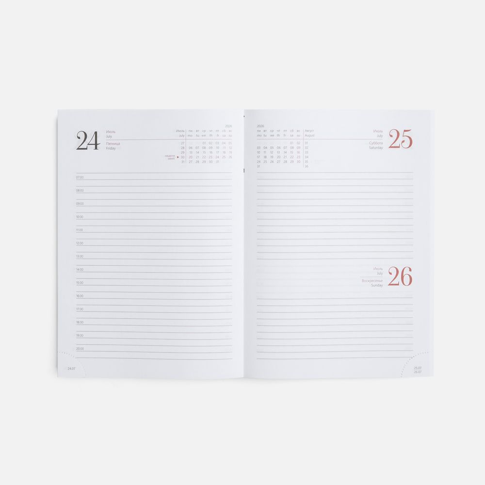 Ежедневник с твердой обложкой без поролона, выполнен из материала Nebraska, коричневый RR, дополнен ляссе и капталом в цвет обложки.